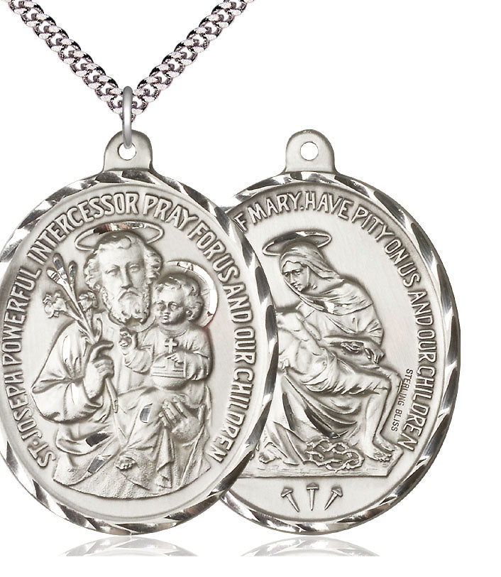 Our vintage-style Sterling Silver Saint Joseph Pendant on a 24-inch Rhodium Curb Chain is proudly manufactured in the USA.