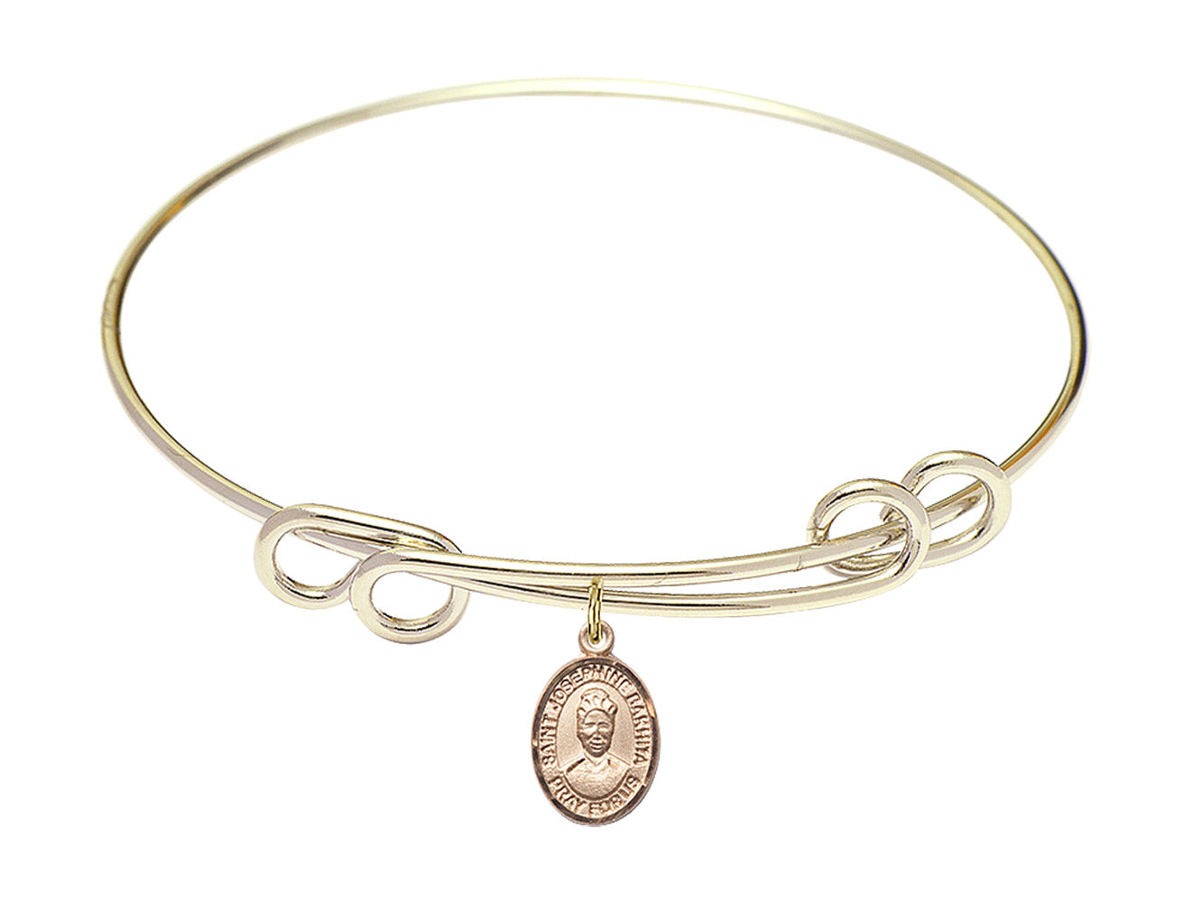 8.5-inch Double Loop Bangle Bracelet | 14kt Gold Filled St. Josephine Bakhita Charm | Engravable