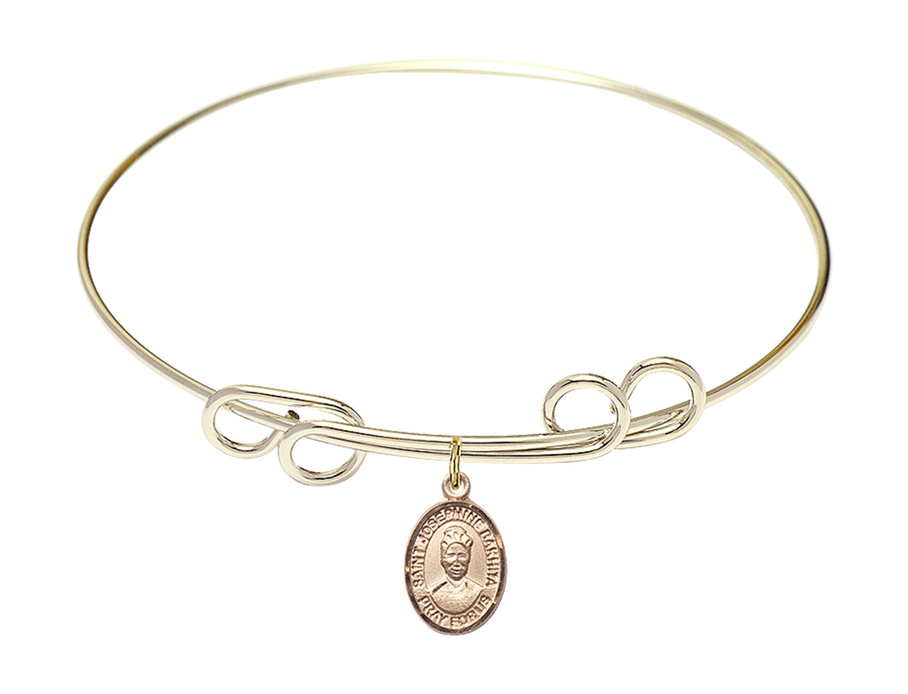 Our 8 inch Round Double Loop Hamilton Gold Bangle Bracelet with a 14kt Gold Filled St. Josephine Bakhita charm. is proudly manufactured in the USA.