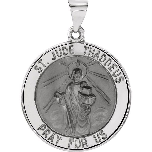 14K White Gold Hollow Round St. Jude Thaddeus Me
