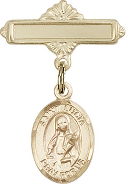 14kt Gold Filled Baby Badge with St. Lucia of Syracuse Charm and Polished Badge Pin