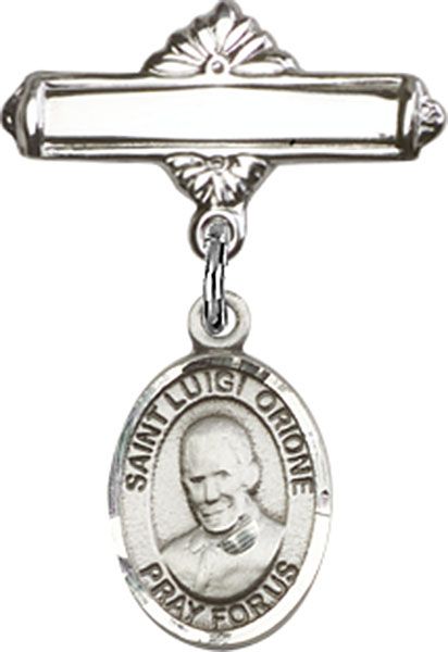 Sterling Silver Baby Badge with St. Luigi Orione Charm and Polished Badge Pin