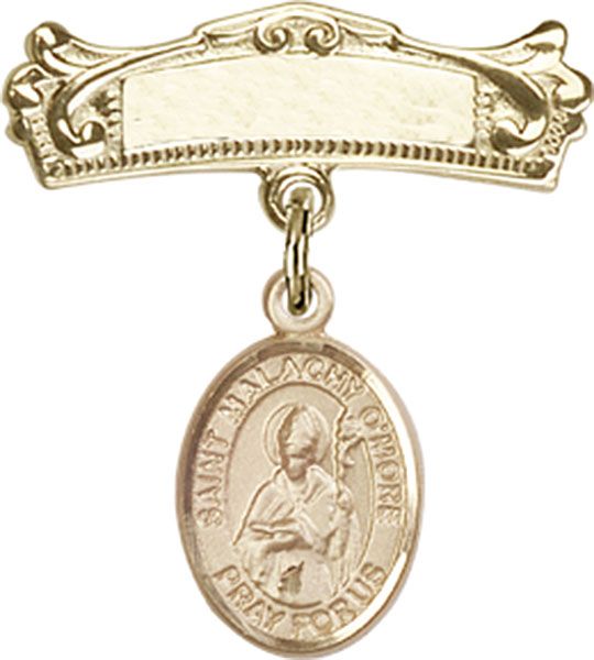 14kt Gold Baby Badge with St. Malachy O'More Charm and Badge Pin