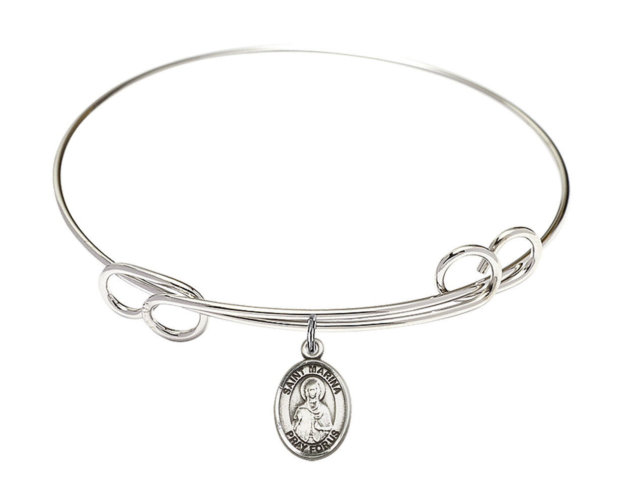 Our 7 1/2 inch Round Double Loop Rhodium Bangle Bracelet with a Sterling Silver St. Marina charm. is proudly manufactured in the USA.