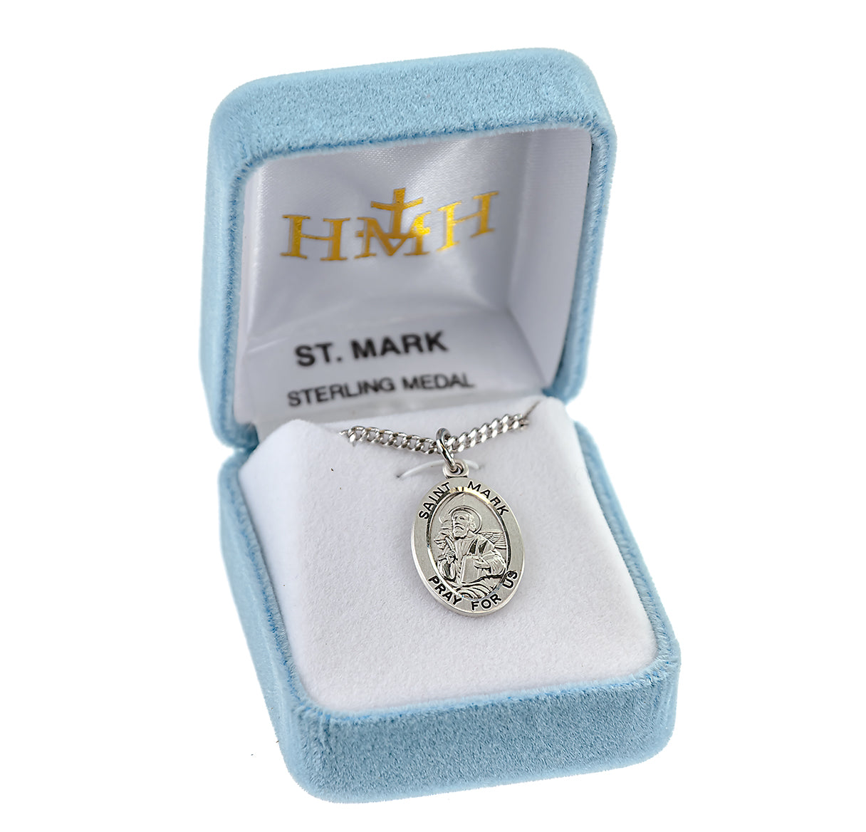 This Sterling Silver Oval Shaped St. Mark Medal is made in the USA.