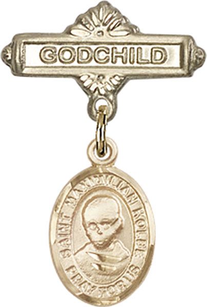 14kt Gold Filled Baby Badge with St. Maximilian Kolbe Charm and Godchild Badge Pin