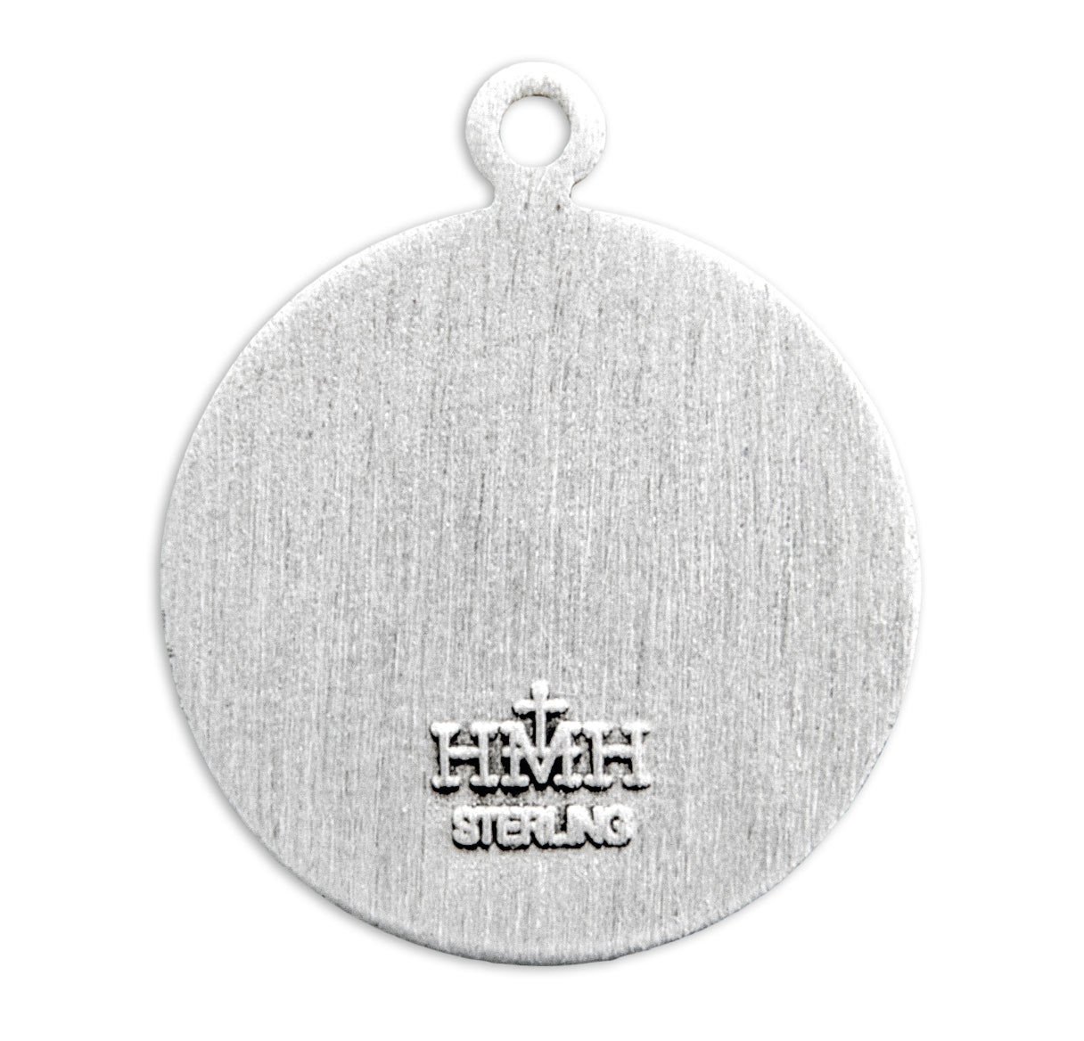 5/8-inch Sterling Silver St. Michael Medal, made in the USA. The Round Shaped Medal is adorned with a Depiction of St. Michael Slaying Lucifer.