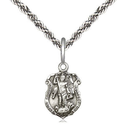 Sterling Silver St. Michael the Archangel Shield Medal | Small | Engravable