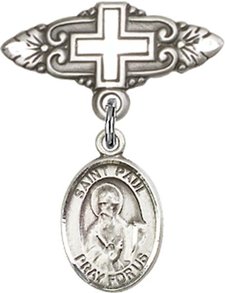 Sterling Silver Baby Badge with St. Paul the Apostle Charm and Badge Pin With Cross