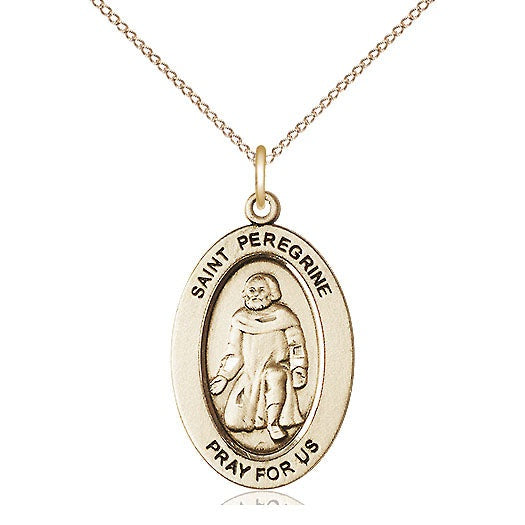 Our 14 Karat Gold-Filled St. Peregrine Medal on an 18-inch Gold Plate Light Curb Chain with Split Ring is proudly manufactured in the USA.
