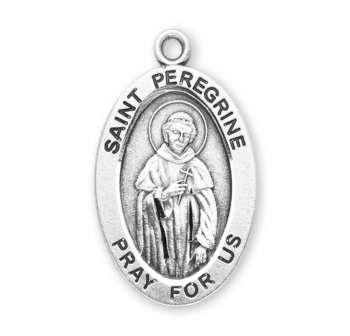 This Sterling Silver Oval Shaped St. Peregrine Medal is made in the USA.