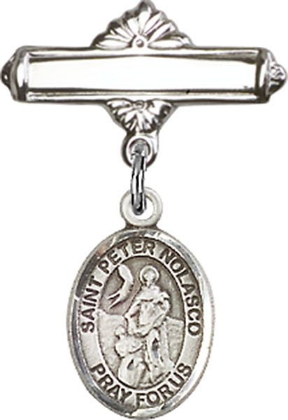 Sterling Silver Baby Badge with St. Peter Nolasco Charm and Polished Badge Pin