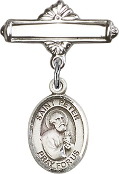 Sterling Silver Baby Badge with St. Peter the Apostle Charm and Polished Badge Pin
