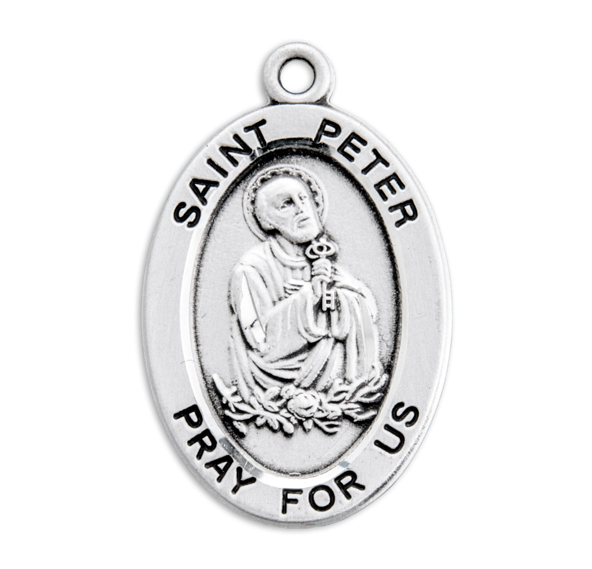 This Sterling Silver Oval Shaped St. Peter Medal is made in the USA.