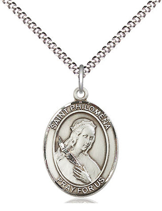 Sterling Silver Medal of St Philomena with 18-inch Chain