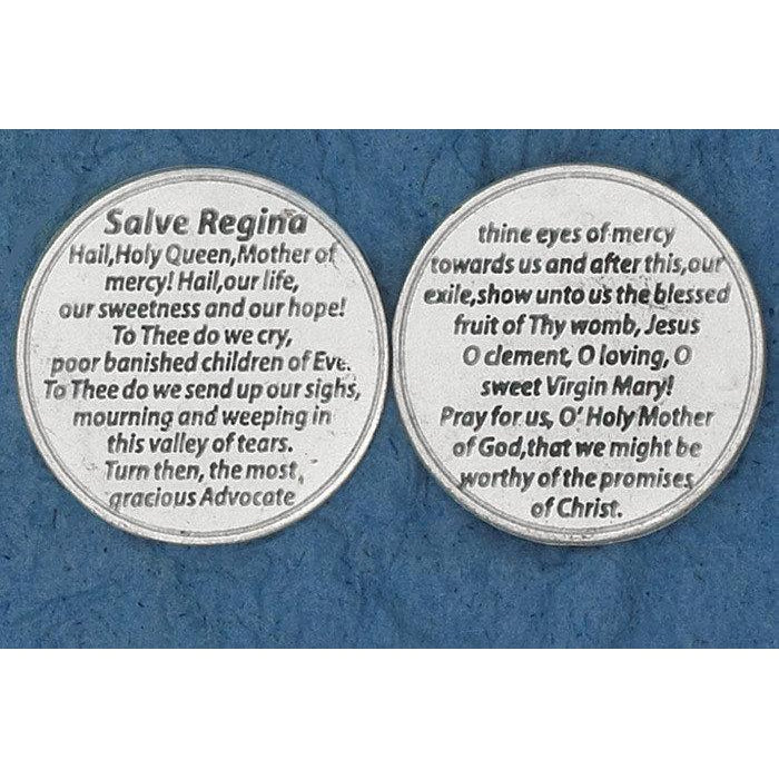 These beautiful silver-toned Italian pocket tokens feature the beloved Salve Regina prayer, one of the Church's most cherished Marian hymns. Crafted with care in Italy by Lumen Mundi, each token is perfectly sized to carry in a pocket or purse as a daily reminder of our Blessed Mother's loving intercession. The Salve Regina, or "Hail Holy Queen," has offered comfort to Catholics for centuries with its tender plea to Mary, our life, our sweetness, and our hope.