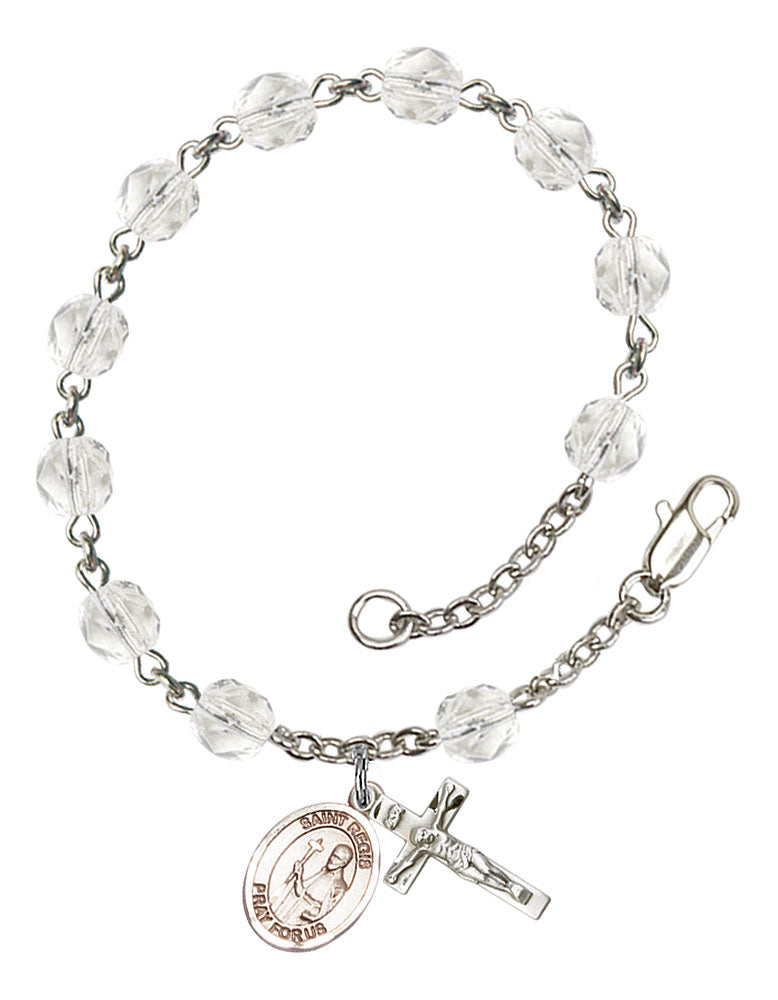 Our Saint Regis Rosary Bracelet features 6mm-bead Crystal Fire Polished beads. The Crucifix measures 5/8 x 1/4 inches. The charm is a St. Regis medal.
