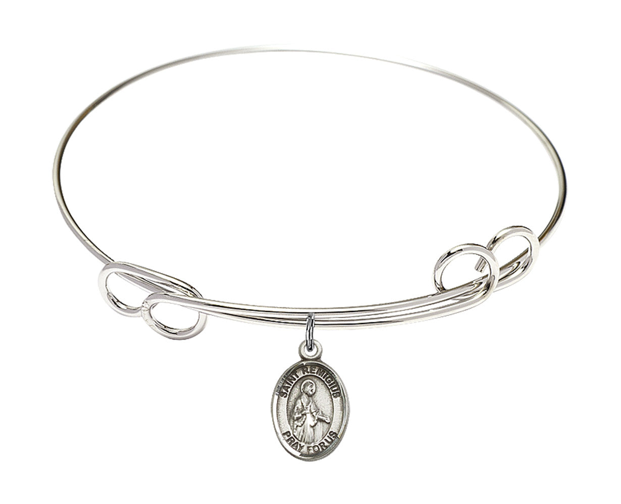 7.5-inch Round Double Loop Rhodium Bangle Bracelet | Sterling Silver St. Remigius of Reims Charm | Engravable