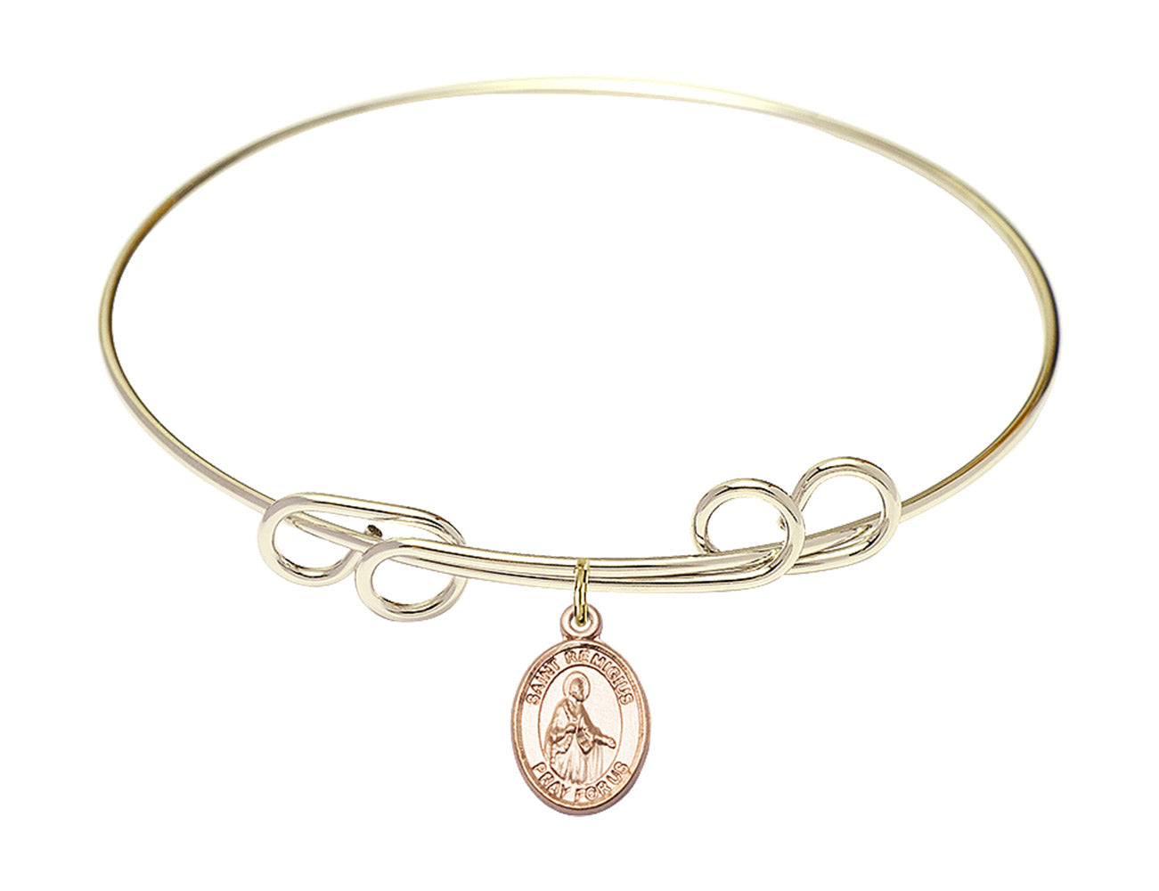 8-inch Double Loop Bangle Bracelet | 14kt Gold Filled St. Remigius of Reims Charm | Engravable