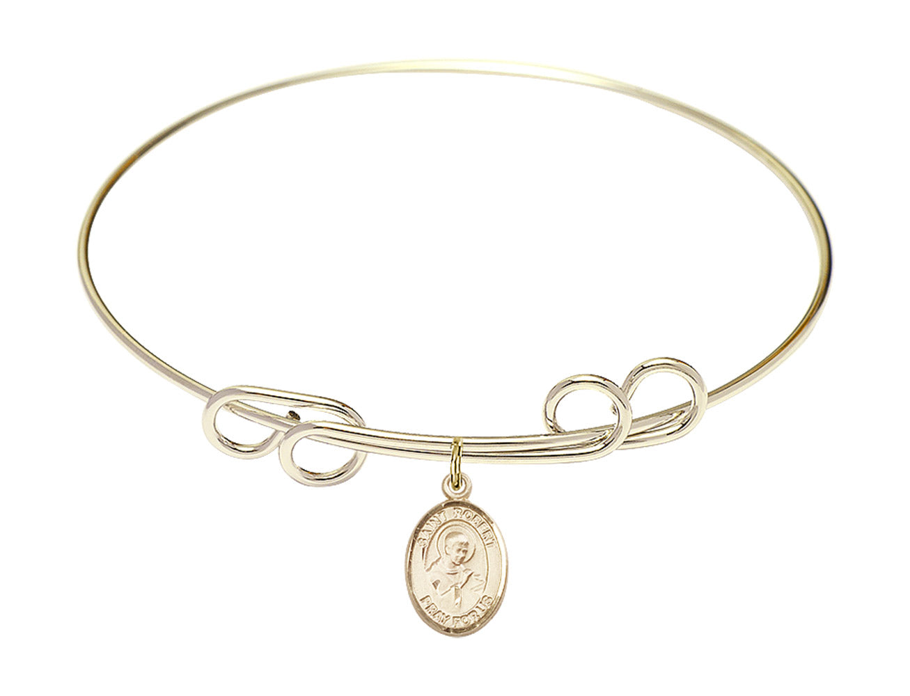 8-inch Double Loop Bangle Bracelet | 14kt Gold Filled St. Robert Bellarmine Charm | Engravable