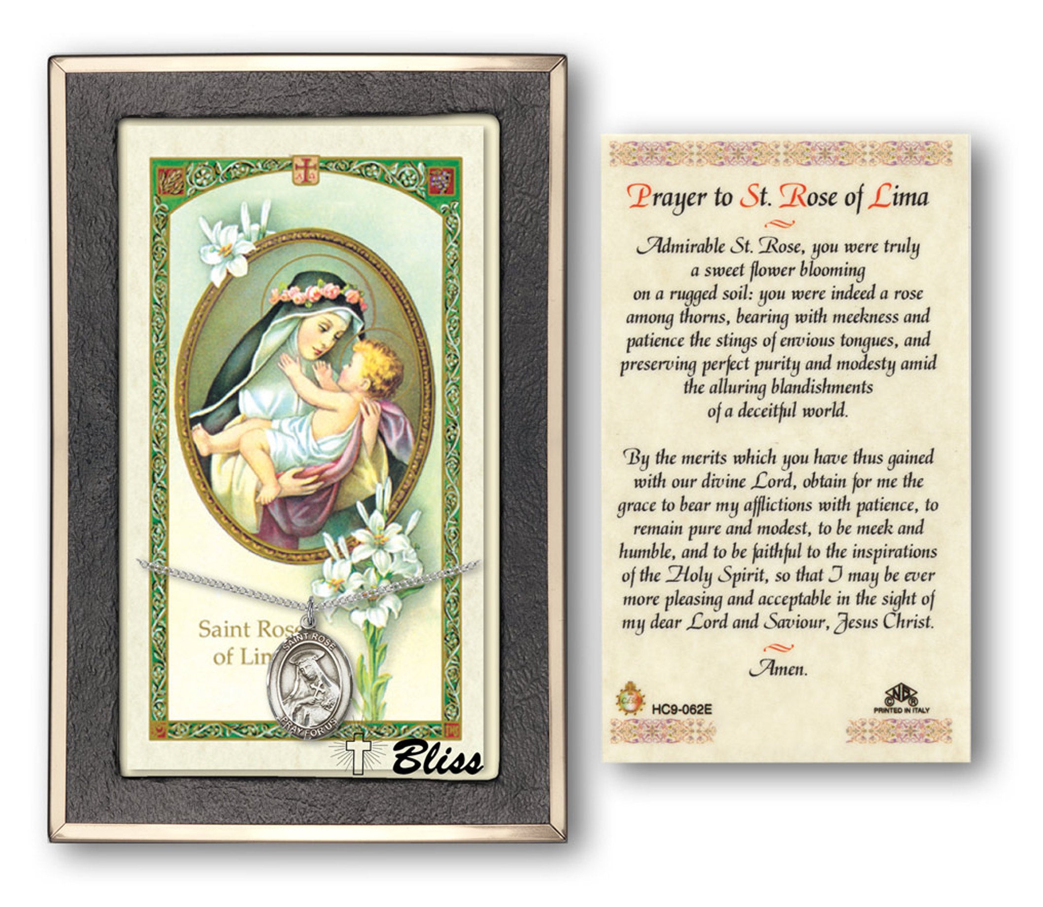 The medium-sized Saint Rose of Lima Medal with Prayer Card will arrive in a deluxe jewelry box, ready to wear or give as a gift.