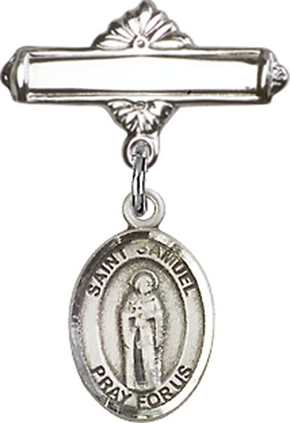 Sterling Silver Baby Badge with St. Samuel Charm and Polished Badge Pin