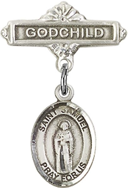 Sterling Silver Baby Badge with St. Samuel Charm and Godchild Badge Pin