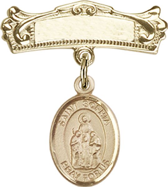 14kt Gold Filled Baby Badge with St. Sophia Charm and Badge Pin
