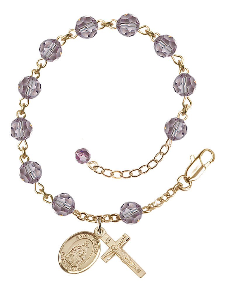 14kt Gold-Filled 6mm Austrian Crystal St. Sophia Rosary Bracelet in Light Amethyst | Engravable