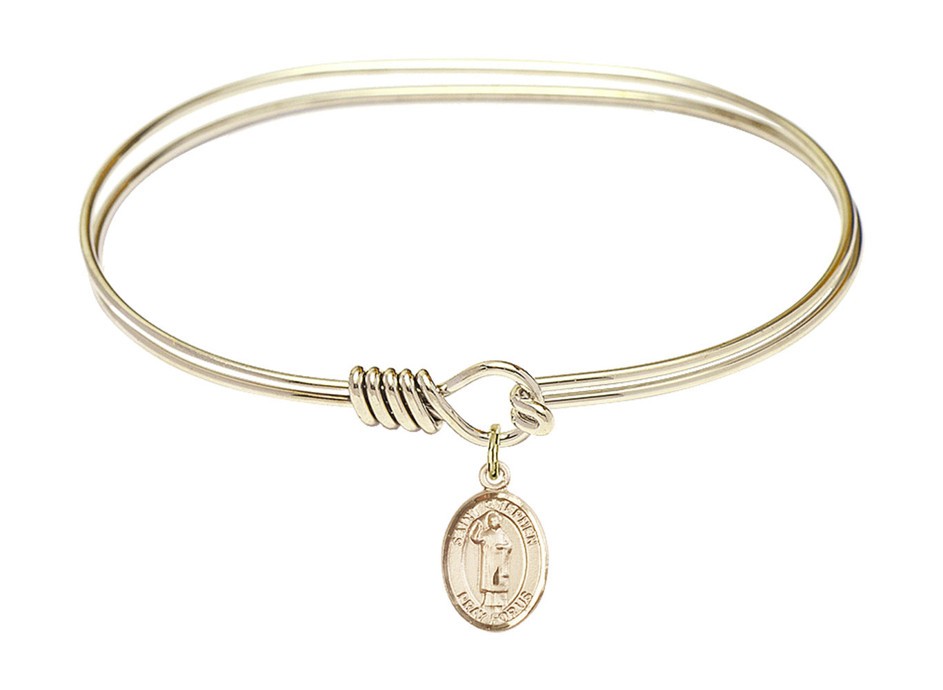 7 inch Oval Eye Hook Hamilton Gold Bangle Bracelet with 14kt Gold Filled St. Stephen the Martyr Charm