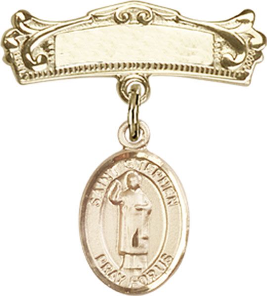 14kt Gold Baby Badge with St. Stephen the Martyr Charm and Badge Pin