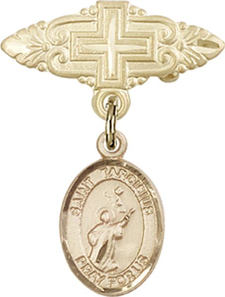 14kt Gold Filled Baby Badge with St. Tarcisius Charm and Badge Pin With Cross