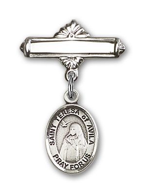 Sterling Silver Baby Badge with St. Teresa of Avila Charm and Polished Badge Pin