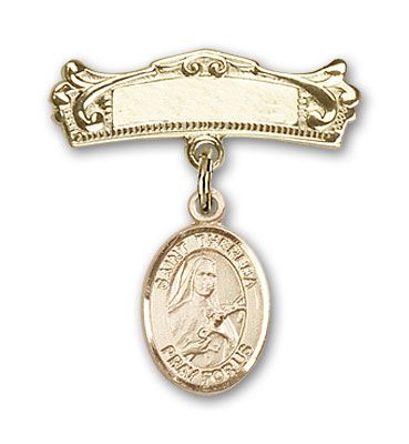 14kt Gold Badge Pin St. Theresa Baby Badge - Engravable