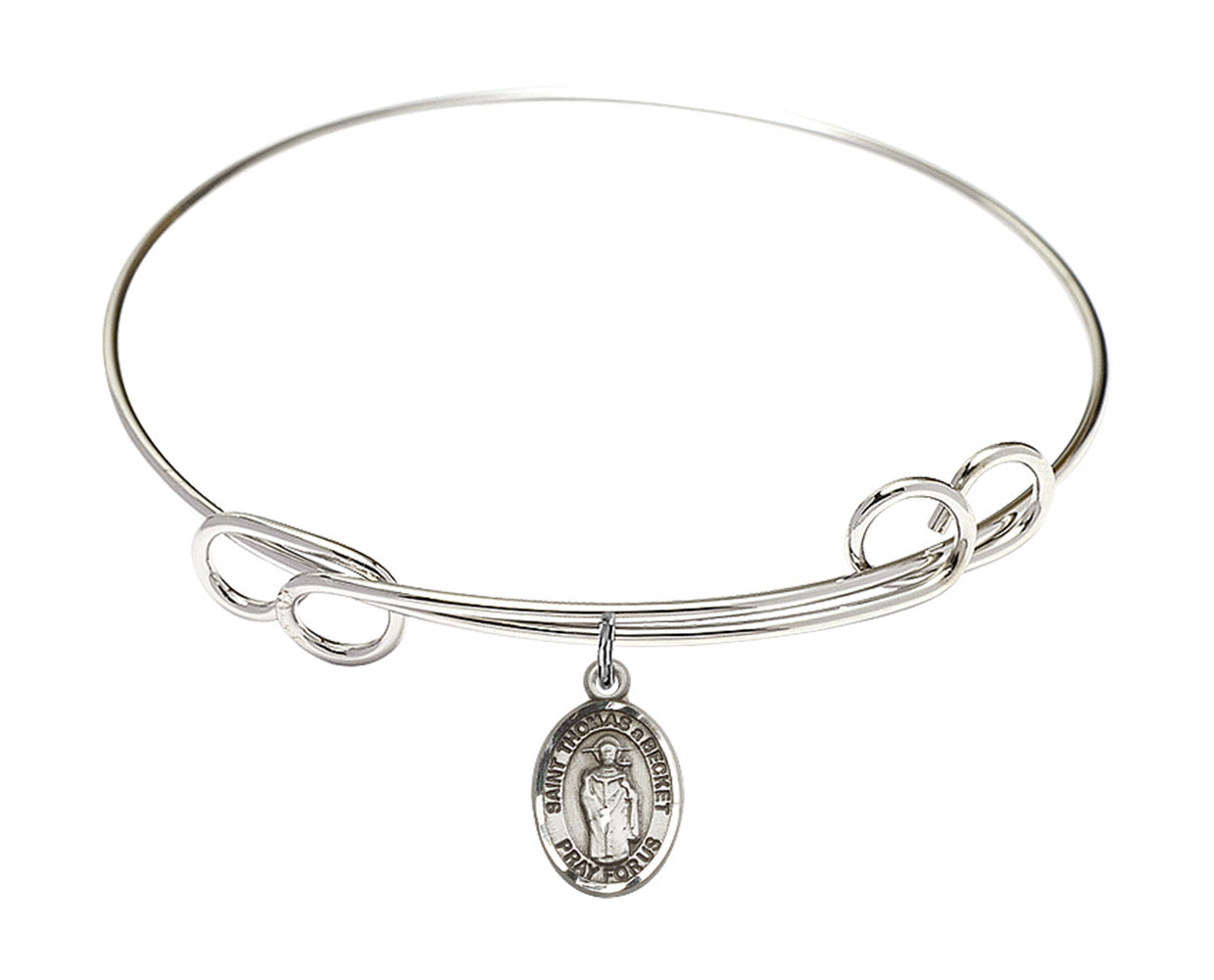 Our 7 1/2 inch Round Double Loop Rhodium Bangle Bracelet with a Sterling Silver St. Thomas A Becket charm. is proudly manufactured in the USA.