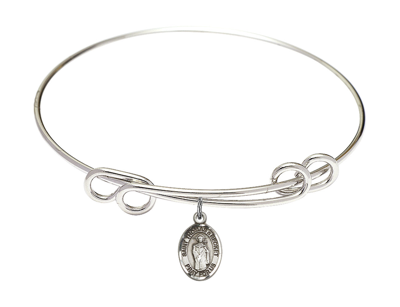 Our 8 1/2 inch Round Double Loop Rhodium Bangle Bracelet with a Sterling Silver St. Thomas A Becket charm. is proudly manufactured in the USA.