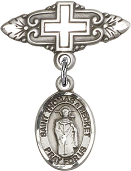 Sterling Silver Baby Badge with St. Thomas A Becket Charm and Badge Pin With Cross