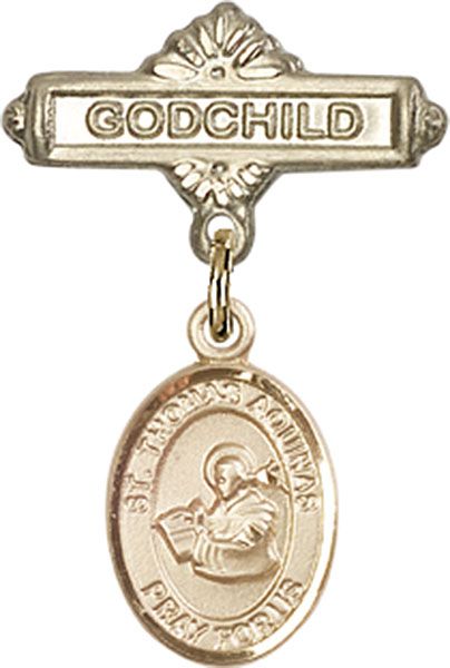 14kt Gold Baby Badge with St. Thomas Aquinas Charm and Godchild Badge Pin