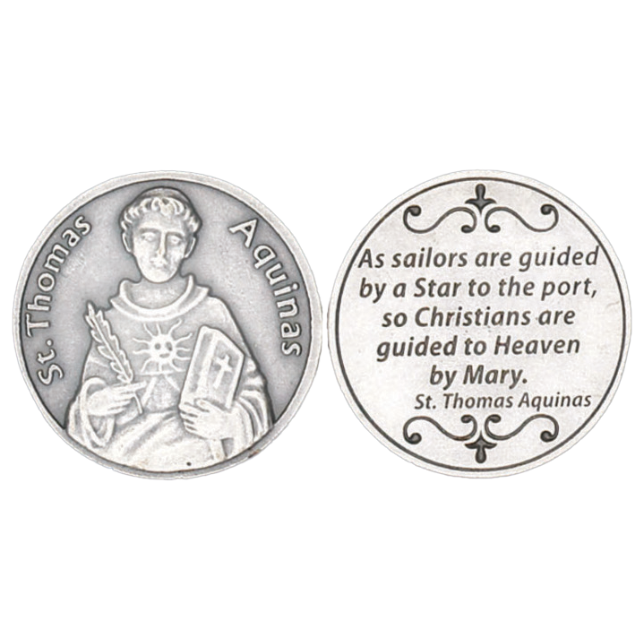 Share the wisdom of the Angelic Doctor with these beautifully crafted Italian tokens honoring St. Thomas Aquinas, patron saint of students, scholars, and Catholic schools. Each silver-tone token features an image of this brilliant Dominican theologian on one side and an inspiring prayer on the reverse, making them perfect for classroom distributions, parish study groups, or graduation gifts. Their compact size slips easily into pockets, wallets, or backpacks as a daily reminder to seek truth through faith and reason.