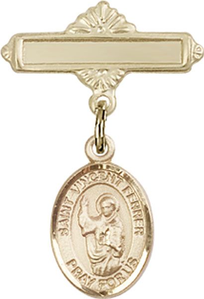 14kt Gold Baby Badge with St. Vincent Ferrer Charm and Polished Badge Pin