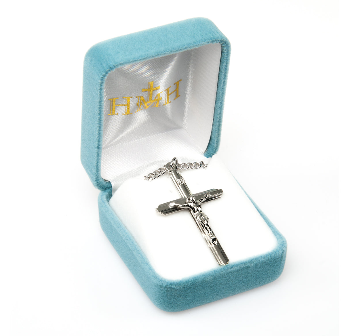 Discover the profound beauty of our 1 1/2-inch Sterling Silver Crucifix with 24-inch Chain, a perfect symbol of faith and devotion. Crafted in the USA, this exquisite crucifix serves as a daily reminder of Christ's ultimate sacrifice and love for us. With a weight of just 2 grams, it's lightweight yet durable, making it ideal for everyday wear or special occasions.