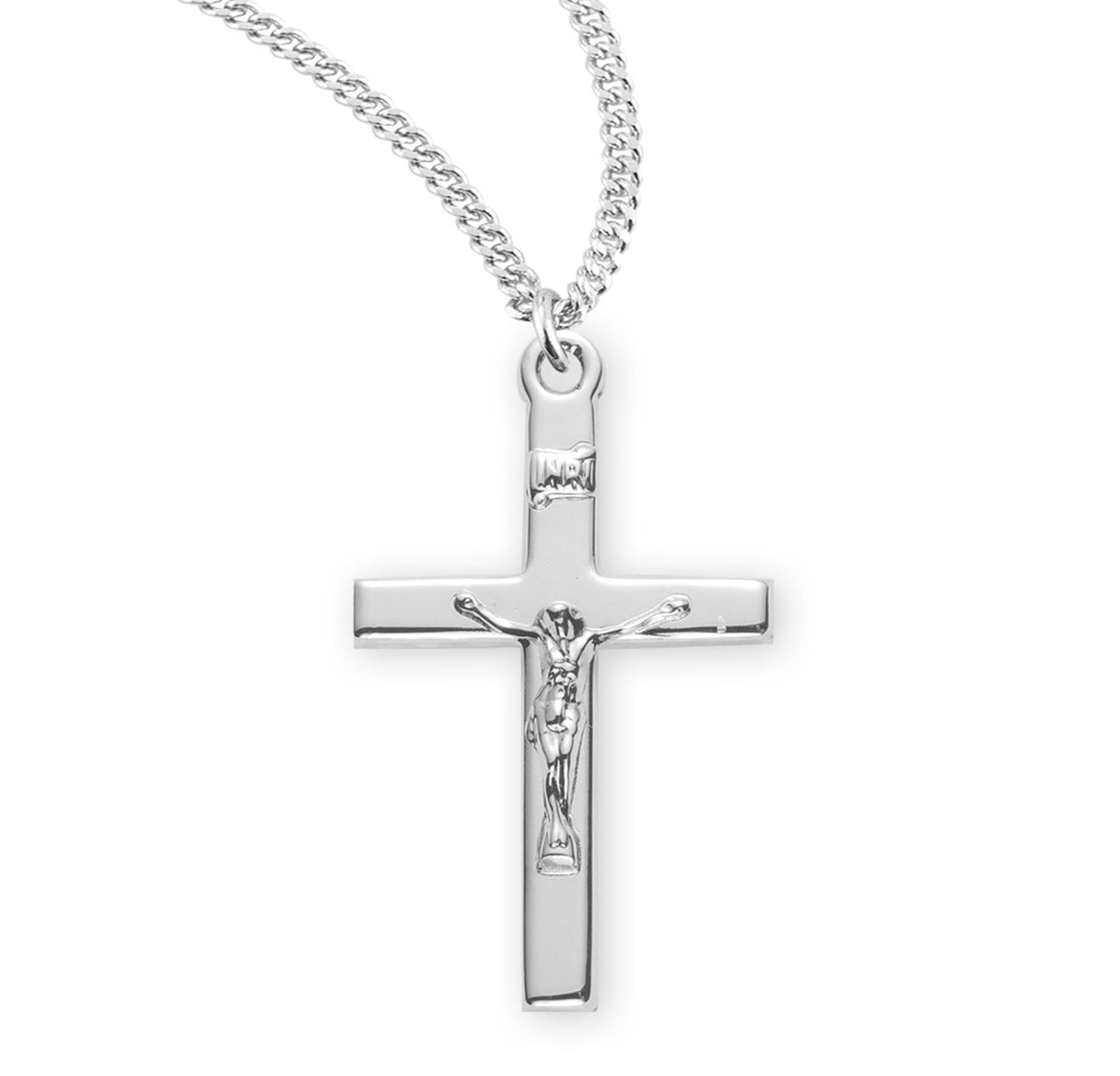 1 1/8-inch Sterling Silver Crucifix with 20-inch Chain