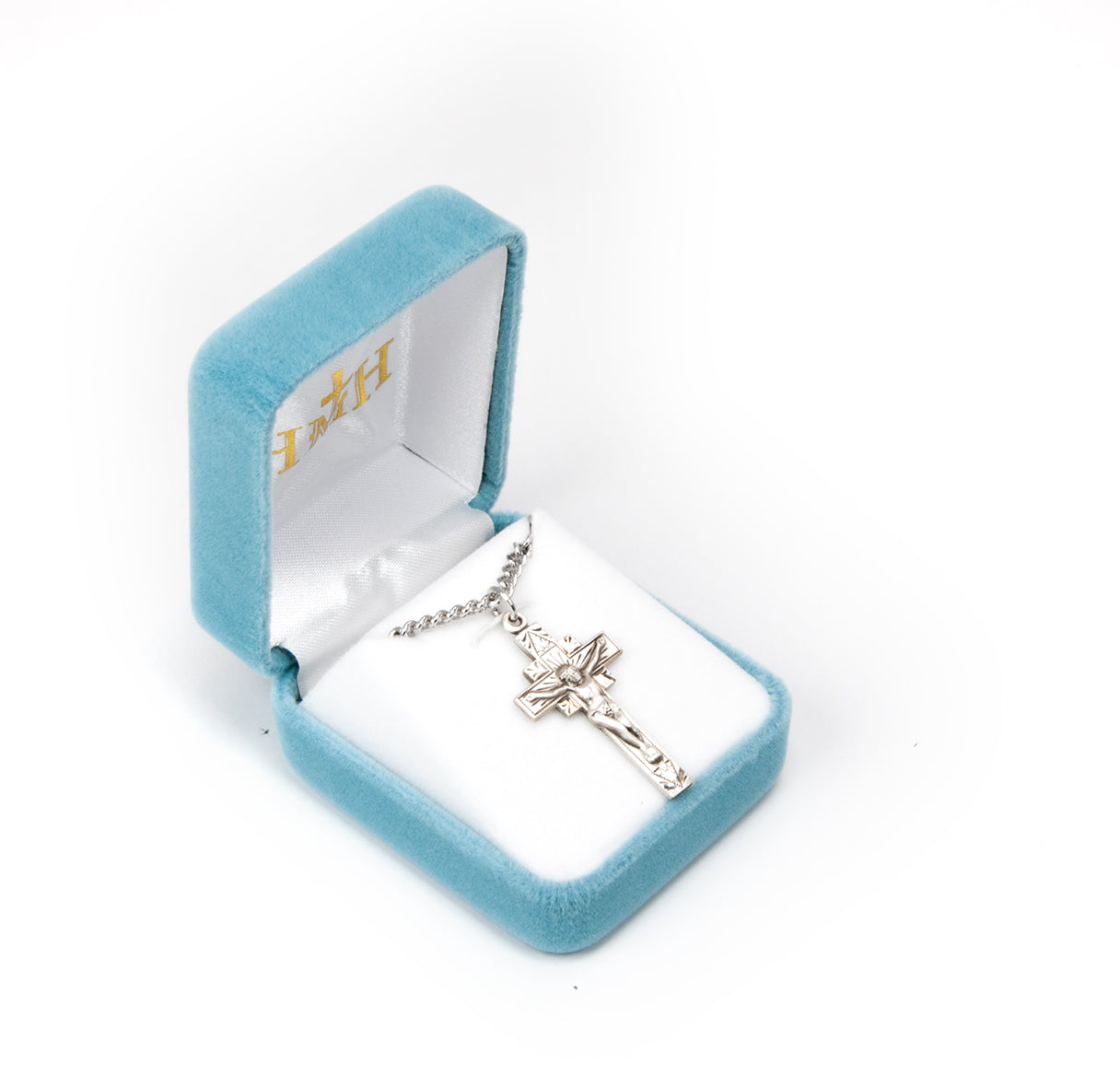 This crucifix is not just a piece of jewelry; it is a spiritual companion that inspires prayer and reflection. Ideal for gifting during sacraments or as a personal devotion, its timeless design allows you to carry your faith wherever you go. Each piece is made in the USA and ships the next business day, ensuring you receive it promptly for your spiritual journey.