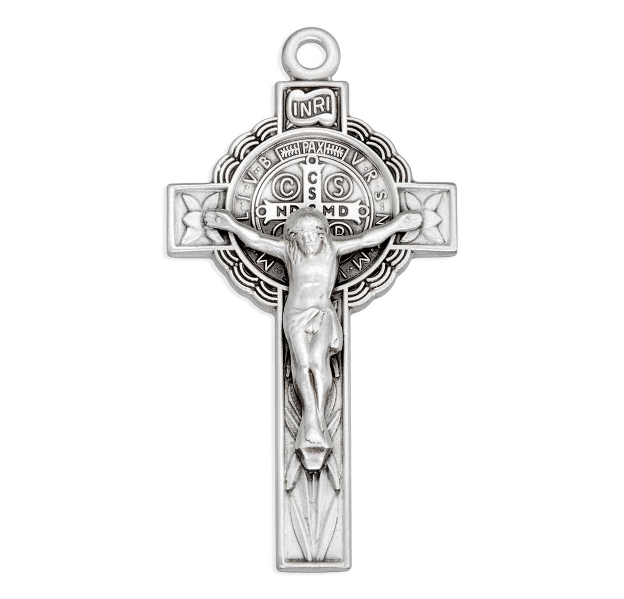 This 1.625-inch Sterling Silver St. Benedict Crucifix with 18-inch Chain is made in the USA.