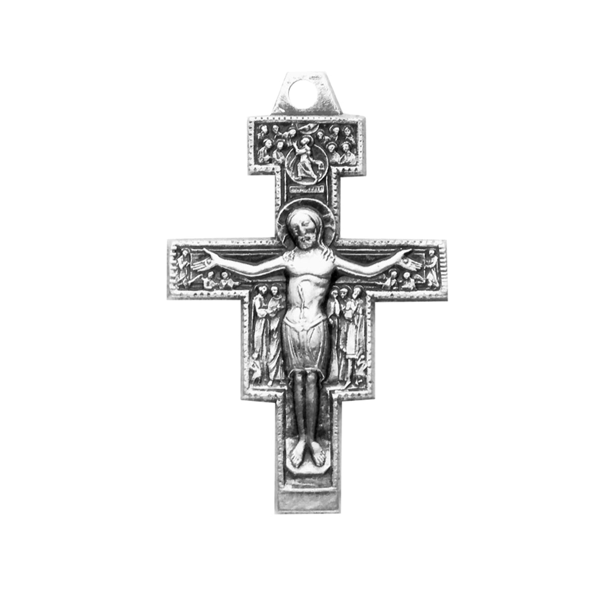 15/16-inch Sterling Silver San Damiano Crucifix with 18-inch Chain.