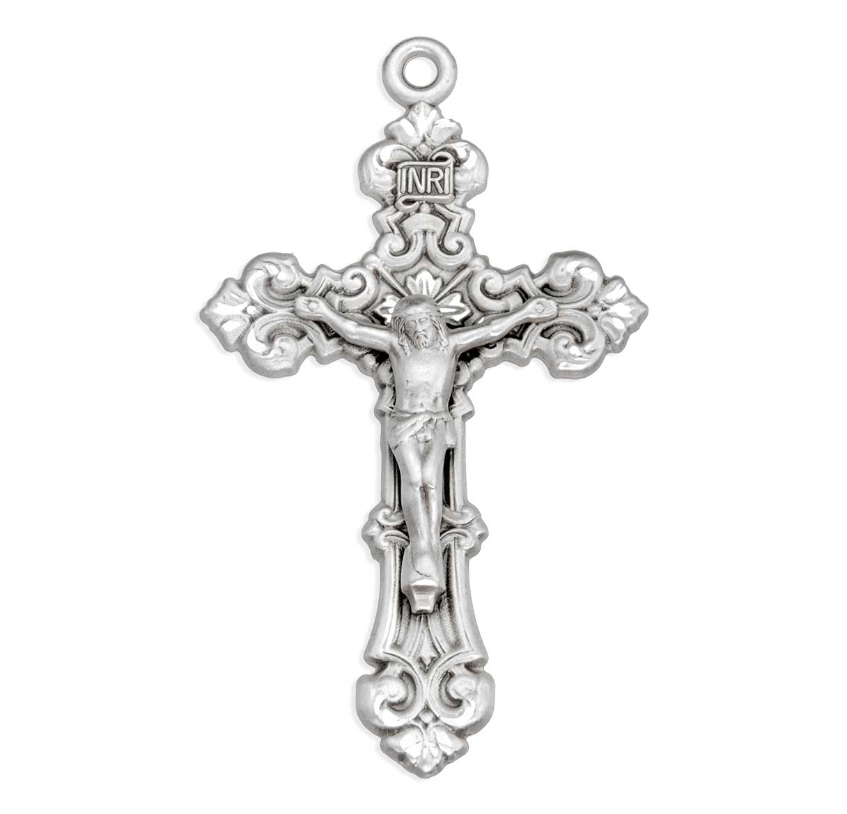 Sterling Silver 2 1/4-inch Crucifix W/Fancy Scroll Work 24-inchCh-Bxd