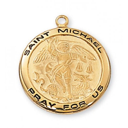 Gold over Silver Medal of St. Michael with Chain - Engravable