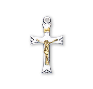 1 1/8' Tutone Sterling Silver Crucifix | 18-inch Chain