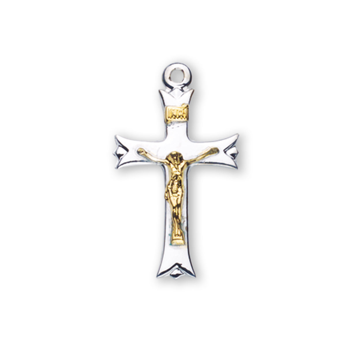 1-inch Tutone Sterling Silver Crucifix with 18-inch Chain