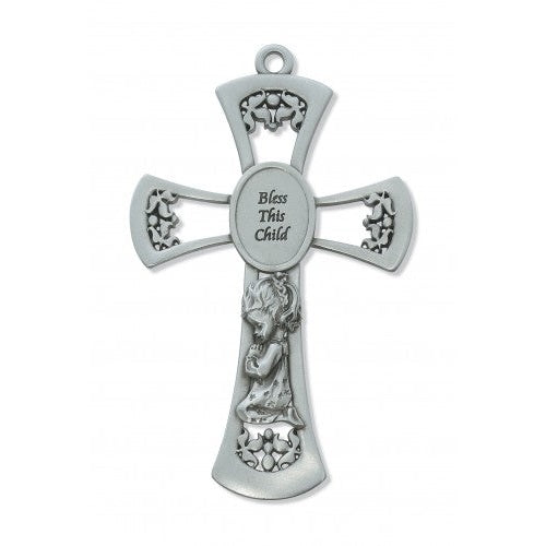 6" Pewter Baby Girl Cross